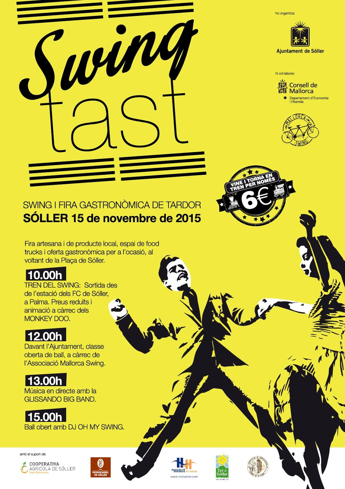 The posters have just been released for another huge event in Soller. On Sunday 15th November Soller devotes itself to Swing and the Big Band Sound. This is a dance festival with a difference and the music is pure swing. The Train company have issued details of a very special price for a return trip from Palma as many hundreds of Swing Music fans are expected to descend on us. To coincide with all this great music a fiesta of food and drink is being prepared and will make it a day trip to remember. Swing in Soller has a great ring to it and we are all really looking forward to another innovation in the Soller calendar of events.