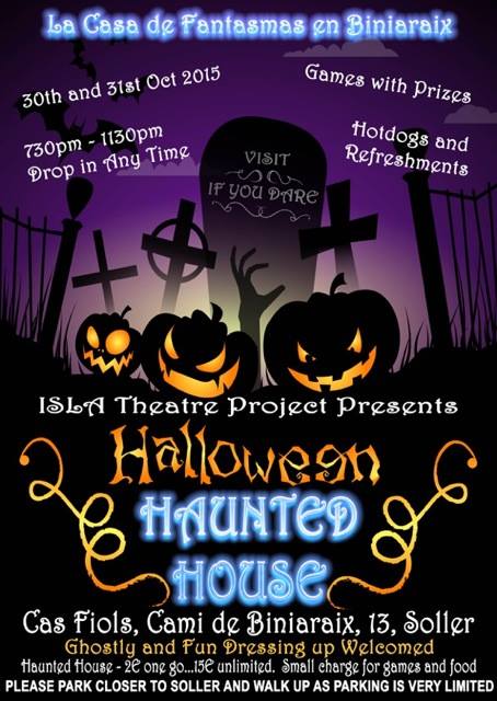 The events this past weekend have all had a Halloween theme and ten of them appeared in the Events Calendar for Saturday night alone. This year has changed the face of Halloween and given it a status equivalent to the parties that happen here on New Years Eve. The Isla Theatre Group staged a two-night extravaganza in a Finca in Biniaraix. I joined the hundreds that went there and exchanged my money for a handful of spiders. The spider was the currency of the evening and allowed me in to the most awesome haunted house specially built for the event by the Isla scenery designers. The spider enabled me to play ghostly skittles plus many other games and eat and drink a little. The place was packed with witches, wizards, cats and broomsticks and the sound of children enjoying themselves.