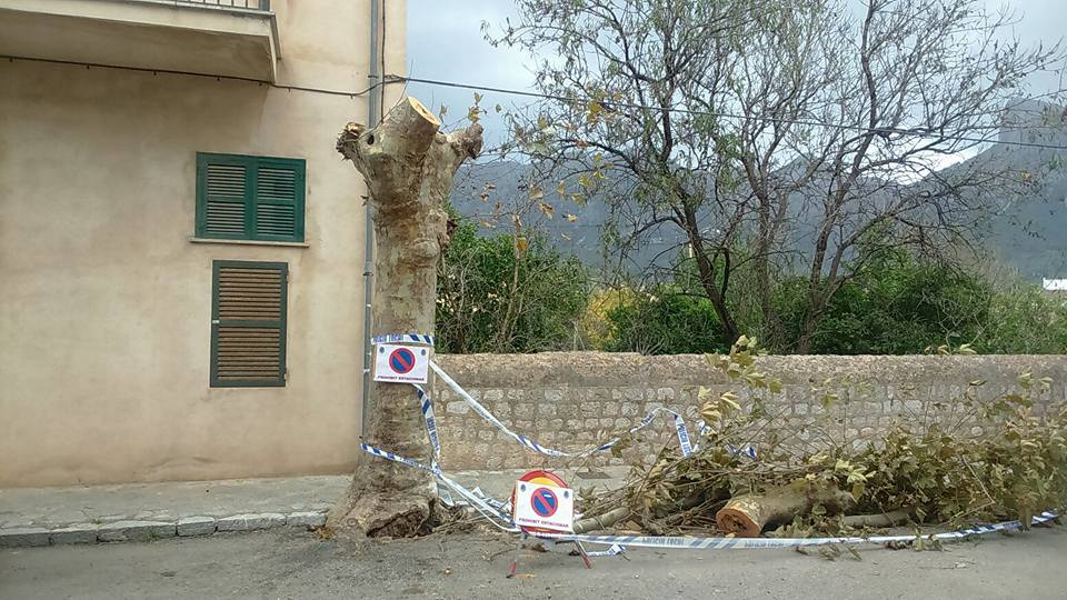 The high winds of Saturday brought fallen trees and leaves scurrying across the roads.  The rain battered us for a while and Soller’s Saturday market closed up early due to weather and lack of souls on the street.  In the L’horta district between City and Port a tree toppled precariously and the fire brigade was alerted to sort the problem.  Burly firemen with ladders and chain saws sorted the tree and provided the mornings entertainment for the street. This was considered newsworthy enough to hit our local papers front page and that gave me real pleasure.  It would be great to envisage a world where these small happenings were the only news.
